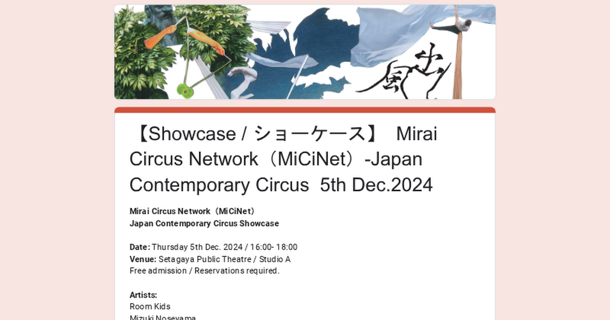 主催:Mirai Circus Network、公益財団法人せたがや文化財団
