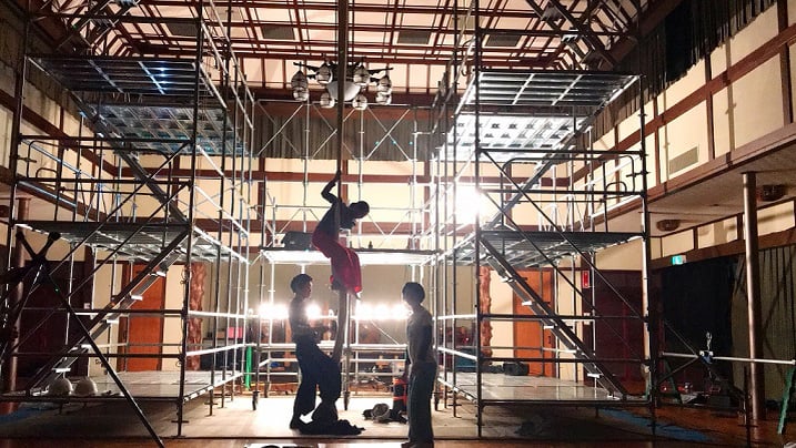Creation of Setouchi Circus Factory, the video shows a work-in-progress performed in Kotohira, Japan, in September 2019....